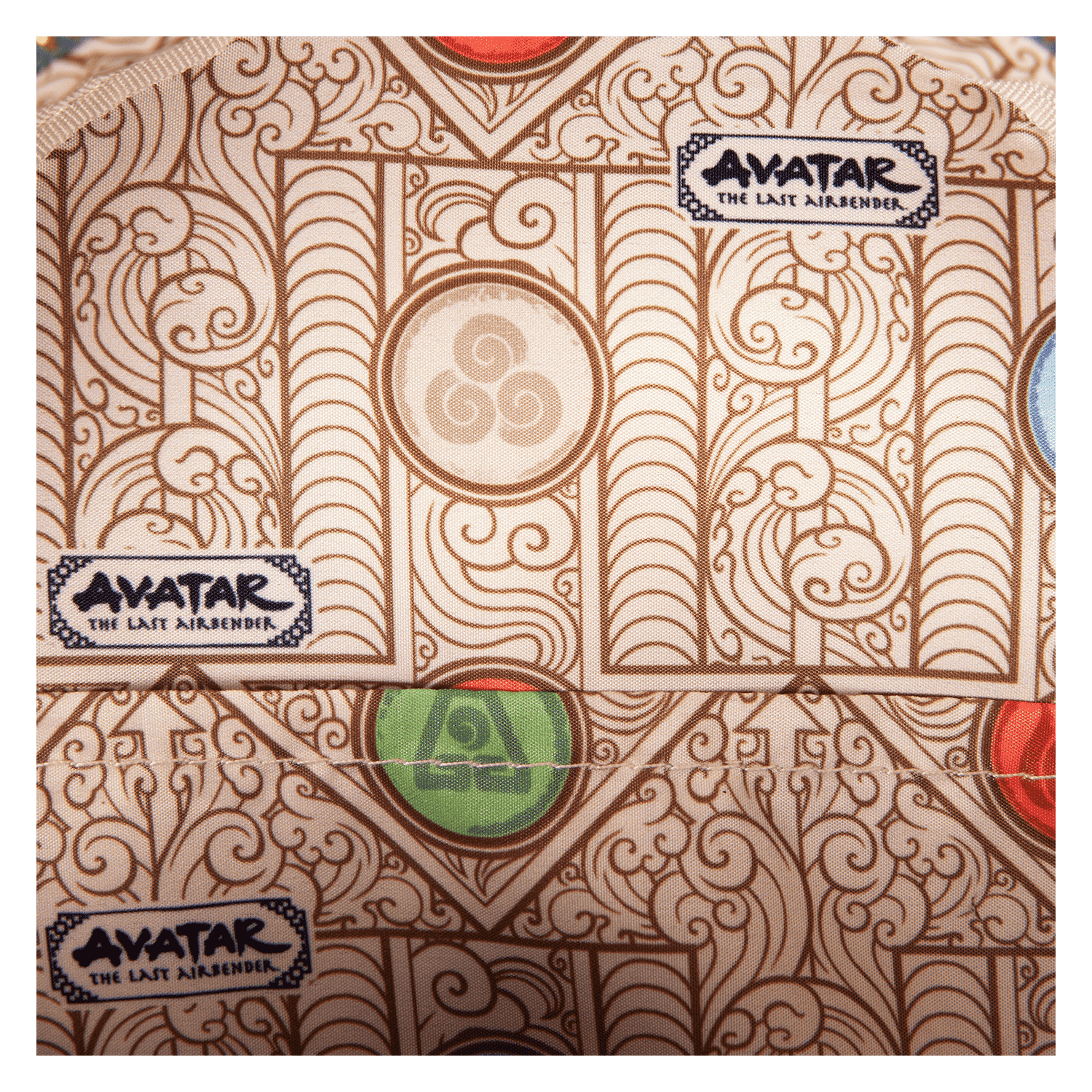 Brave the elements in style! Take along this Avatar: The Last Airbender mini backpack. On the front, you’ll find a colorful applique of Aang, flying in his glider, his wings stretched out. Below him, an applique of Momo appears, and a picturesque view of mountains unfolds. The air-bending symbol, along the applique trim on the front, shines in gold-foil detail. Appa appears on the side panels, and when you flip the backpack around, Momo makes an encore appearance as a print. Pack just what you need for a day of soaring through adventures.